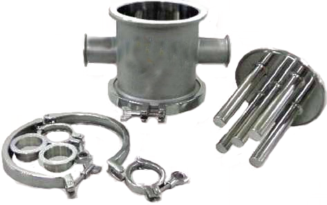 AD系列,(進、出口管徑DN100,卡箍接頭) 磁棒參數(6根磁棒,性能RET-BM, 13000GS)磁蓋卡箍規格(159快裝卡箍)